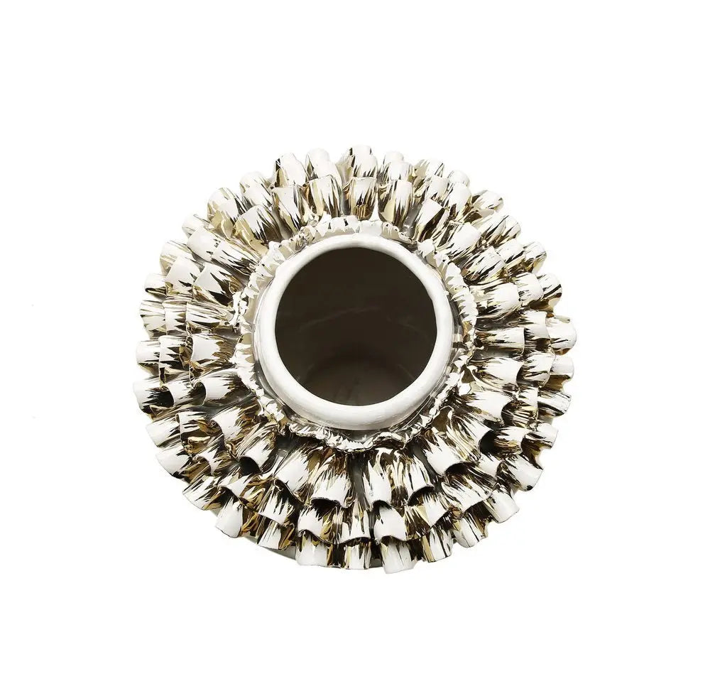10" White Round Ceramic Table Vase With Sculptural Details - NOBLE HOME INTERIORS