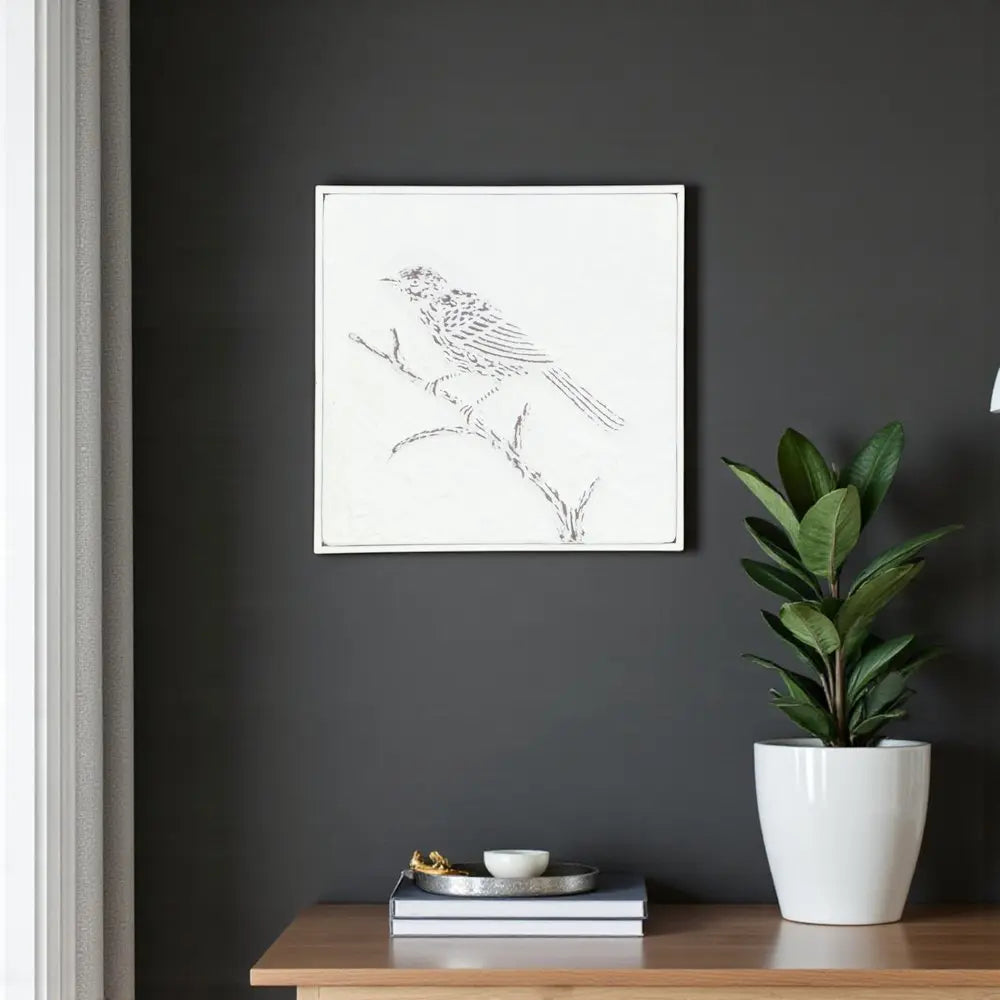 10" X 10" White Bird Metal Square Hanging Wall Decor