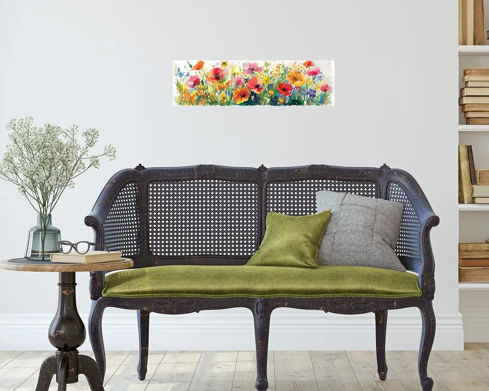 • 10" X 32" White Green And Red Flower Floral Wood Hanging Wall Decor
