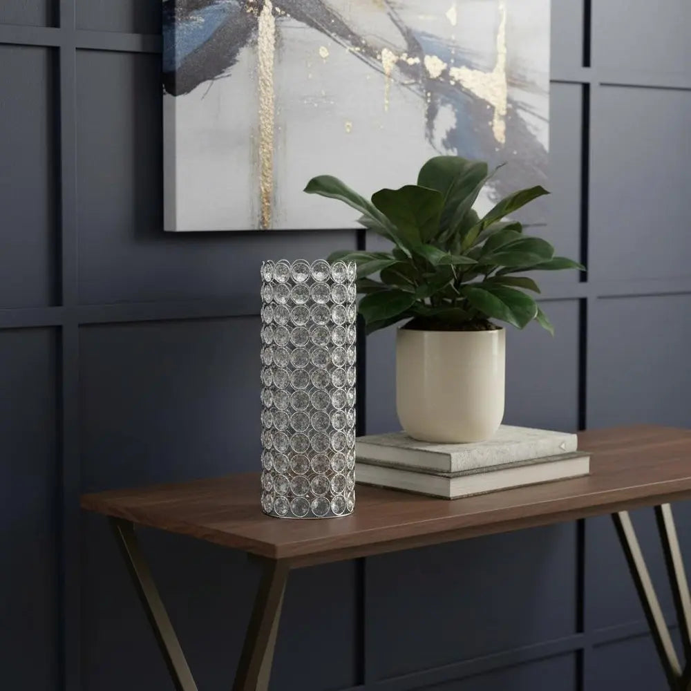 https://www.noblehomeinteriors.store/products/11-silver-and-clear-clear-crystal-cylinder-table-vase-with-crystals