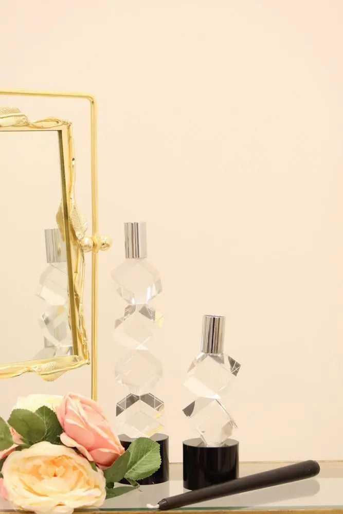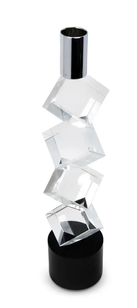 11" Silver Clear And Black Crystal Tabletop Taper Candlestick
