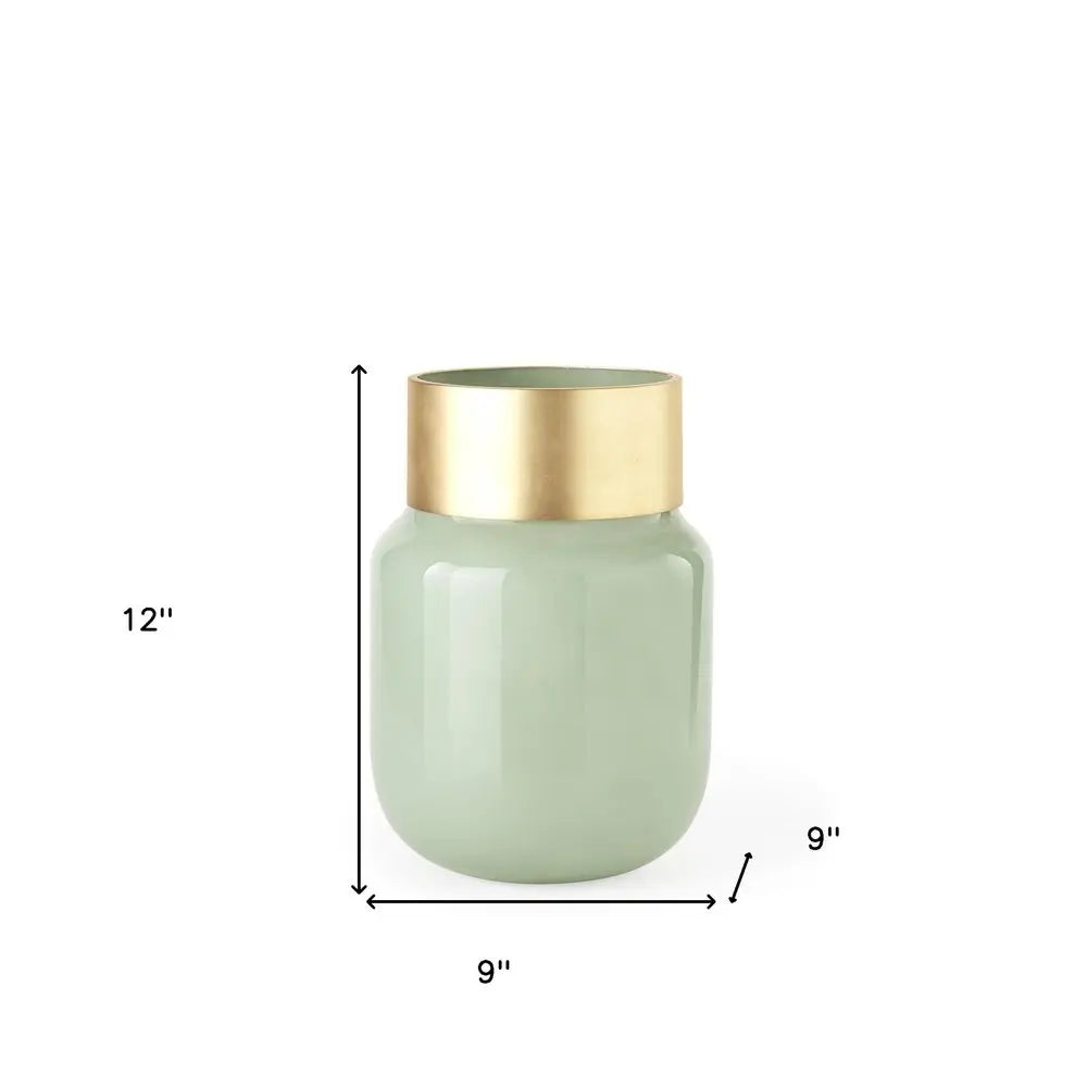 12" Green Abstract Cylinder Crystal Glass Table Vase
