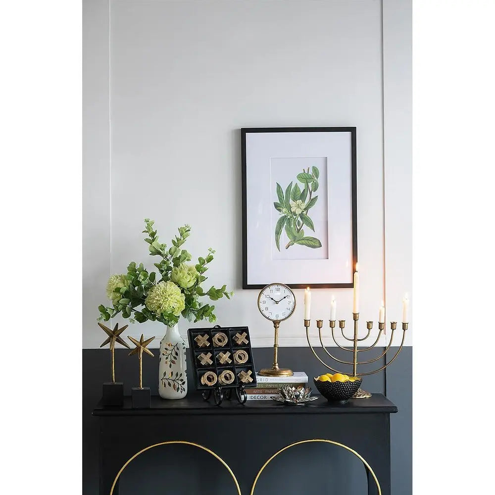 12" White Green And Gold Floral Leaf Bud Ceramic Table Vase - NOBLE HOME INTERIORS