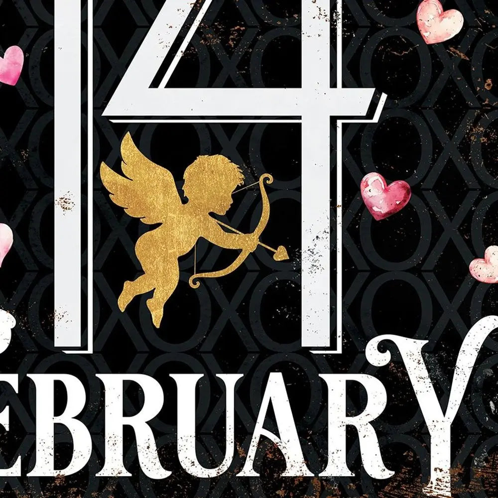 12" X 12" Black White And Pink Valentine's Day 14-Feb Canvas Square Hanging Wall Decor