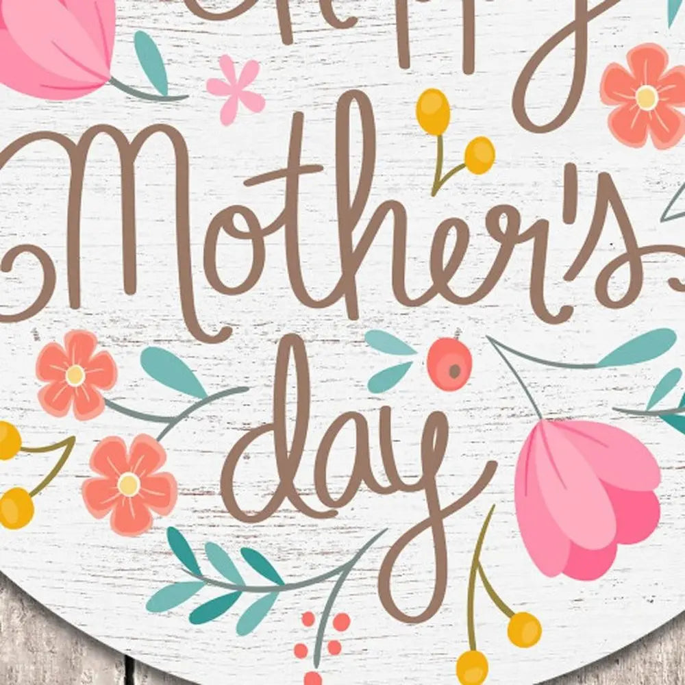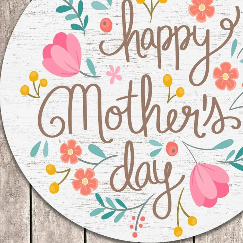 12" X 12" White Brown And Pink Floral Happy Mother's Day Wood Circle Wall Decor