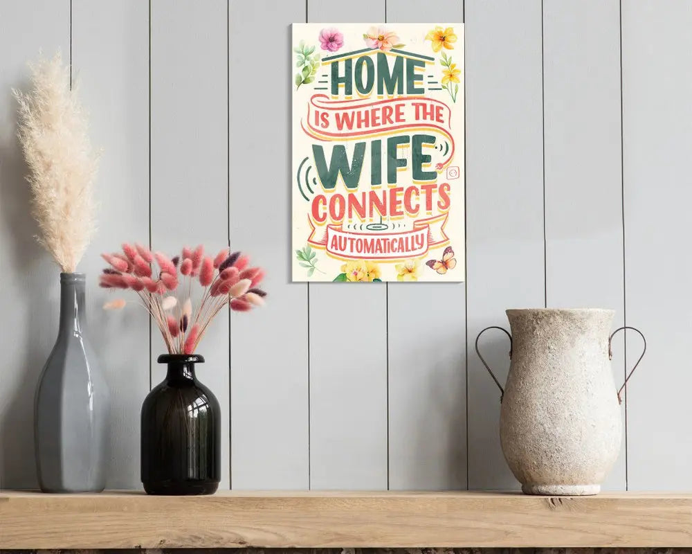 https://www.noblehomeinteriors.store/products/12-x-12-white-green-and-orange-home-is-where-the-wife-connects-automatically-canvas-hanging-wall-decor