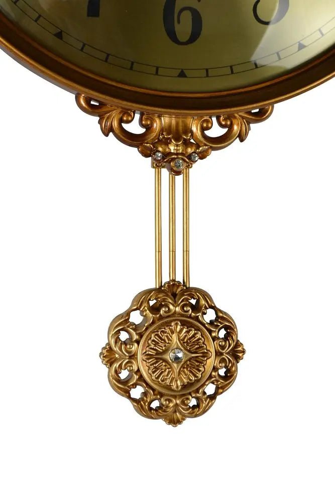 • 13" Gold And Black Resin Silent Pendulum Ornate Round Wall Clock