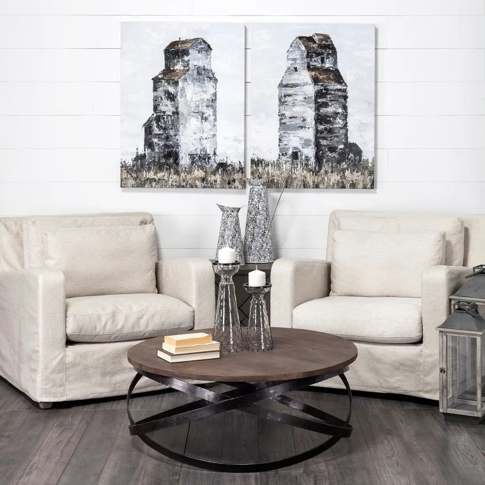 Enhance the elegance of your space with this 14-inch cylinder metal jug vase in a captivating black and white abstract design. Crafted with a rustic style, this vase features a unique coat/paint distressing that adds character to any room. The cylinder shape provides a modern touch, making it a versatile piece for displaying your favorite blooms or as a standalone decorative accent. The striking contrast between the black and white hues effortlessly complements any decor theme, adding a sophisticated flair to your home. Made of high-quality metal, this vase is a durable and stylish addition to your collection. 14.4-inch h x 7.1-inch w x 8.6-inch d.