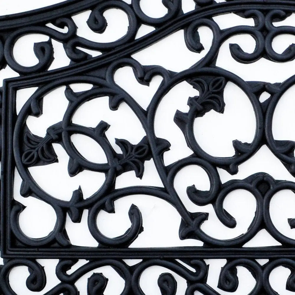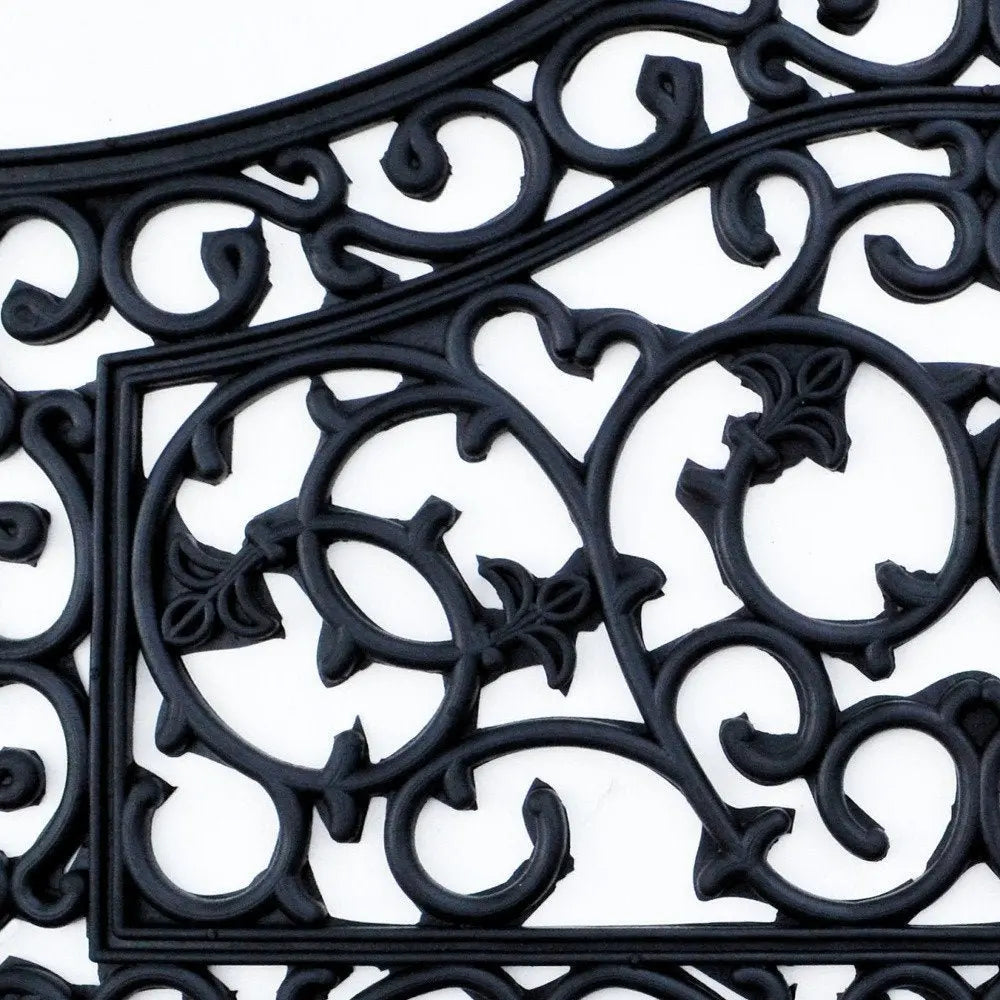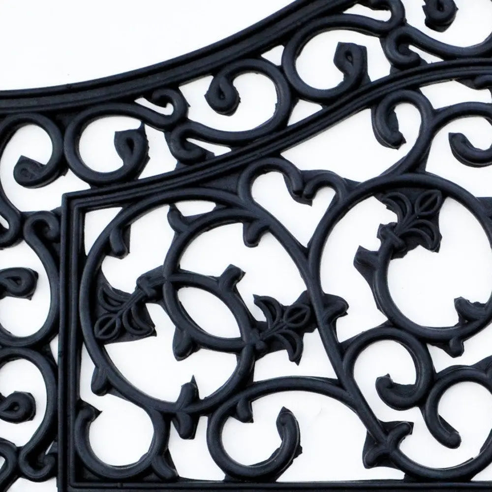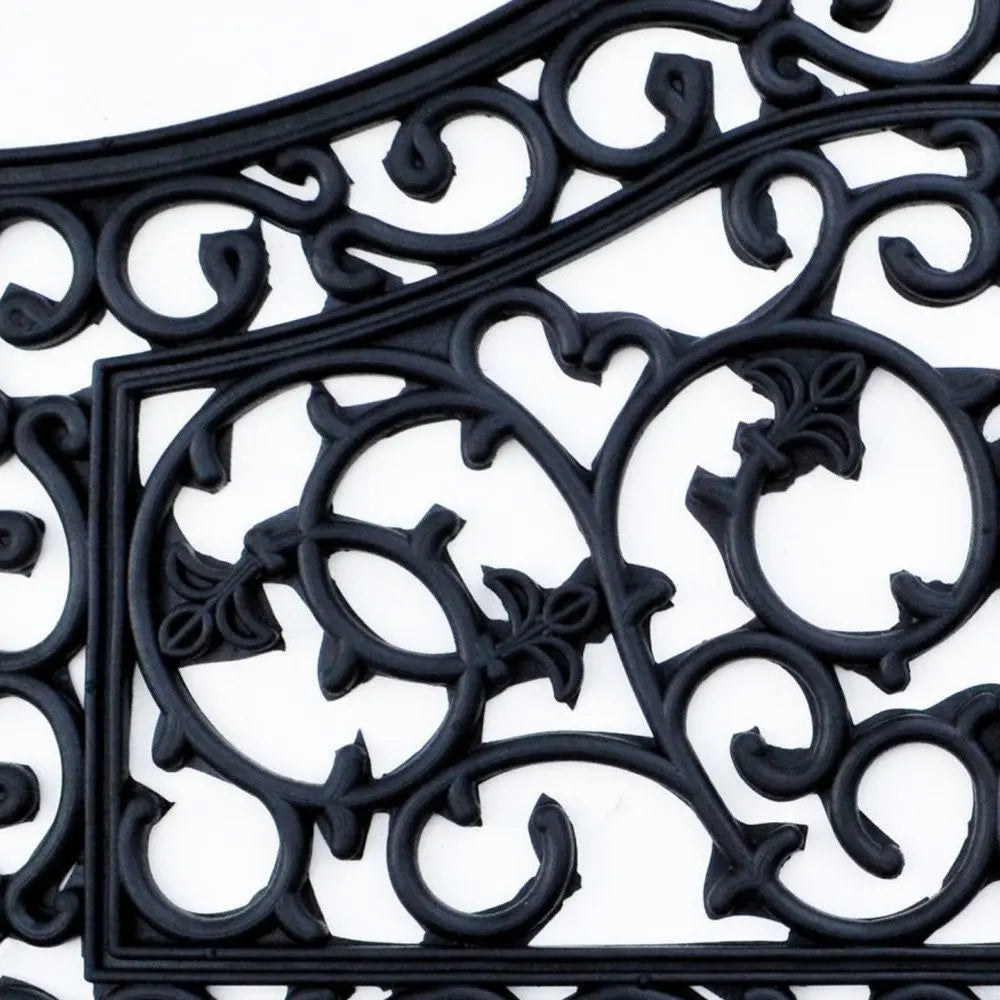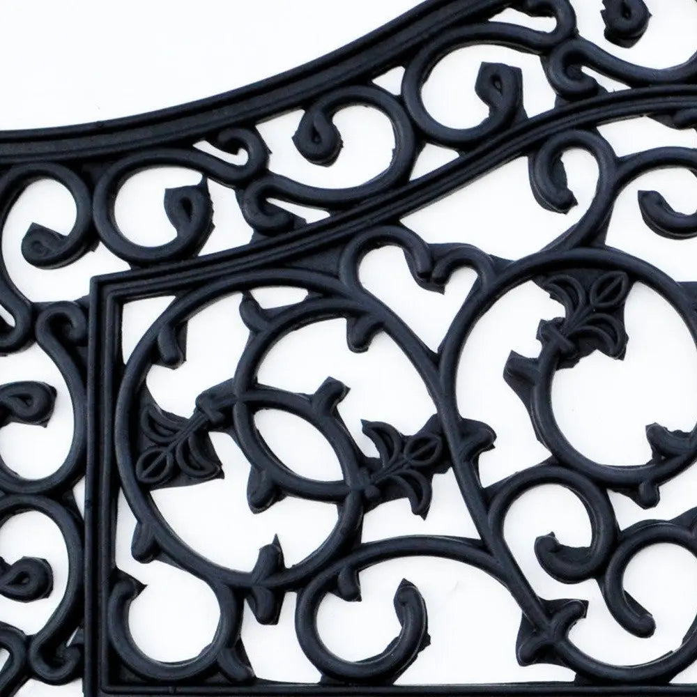 Ready to withstand heavy foot traffic, this 18-inch x 30-inch black rubber outdoor door mat is an ideal option for the front door or entrance way of your home or business. Crafted from rubber, this mat is not only functional but is a visually appealing accessory to welcome people to your home or business. Add this decorative mat to create a practical yet inviting welcome to all who enter. 18-inch H x 30-inch W x 0.5-inch D
