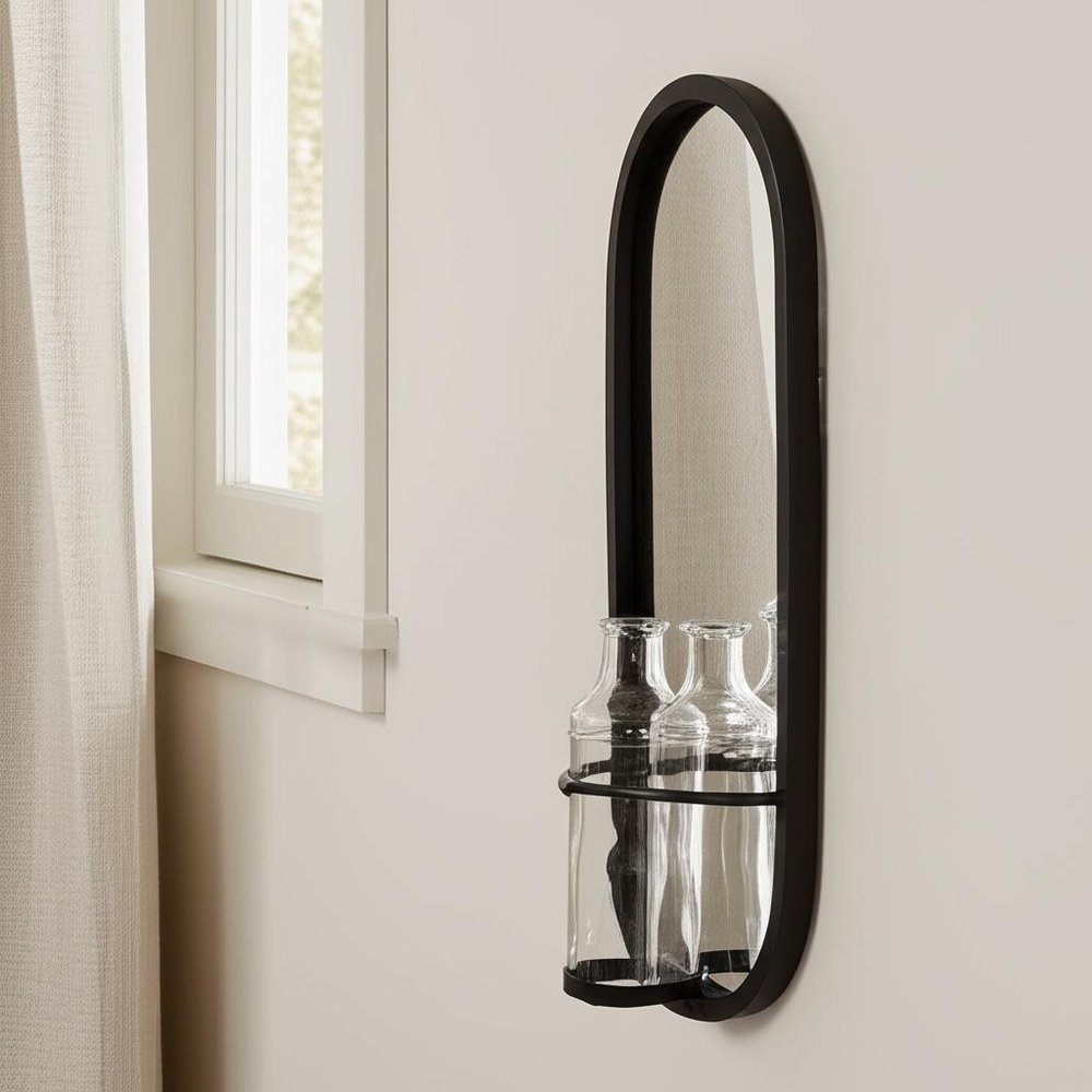19" Black And Clear Glass Bottle Metal And Mirrored Glass Oval Wall Vase