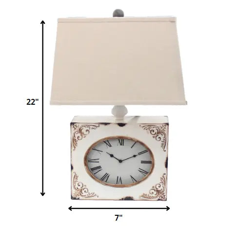 22" Distressed Red Metal Bedside Lamp With Beige Shade HomeRoots