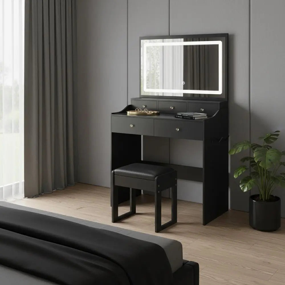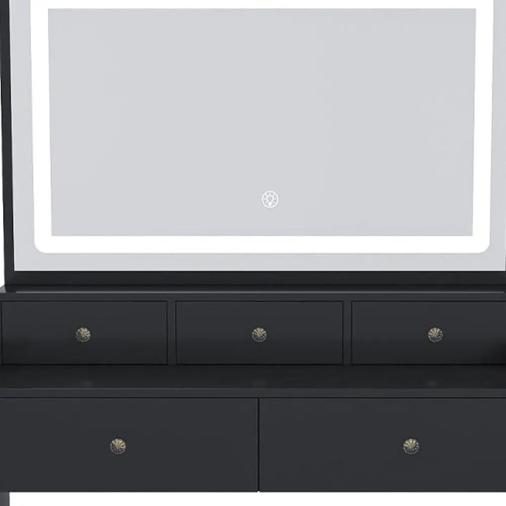 Enhance your room into a visually delightful and highly functional space with this 30-inch black wood lighted five drawer dresser. This vertical standard dresser has a convenient and wide top area for your getting ready needs and supplies. Equipped with five easy open drawers for practical and good looking clothing storage. The black coloration of this piece gives it an updated, and modern edge. 53.10-inch h x 30.30-inch w x 15.75-inch d.