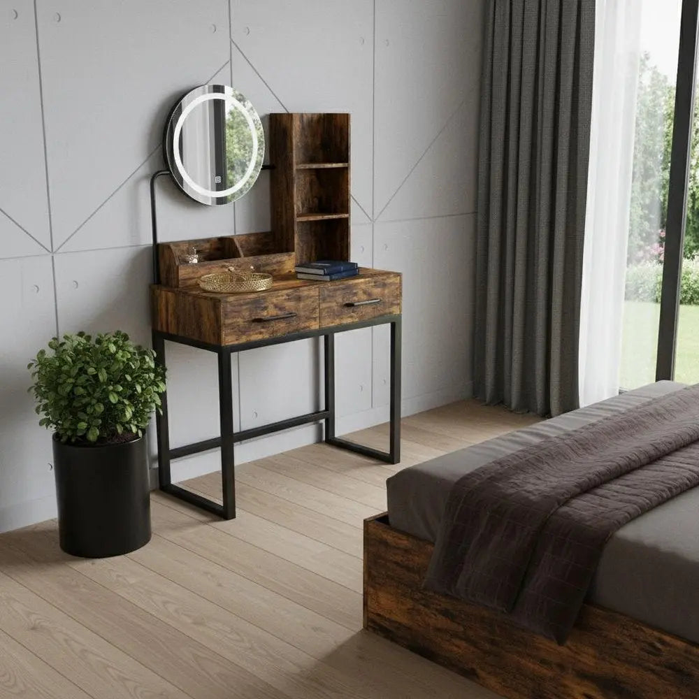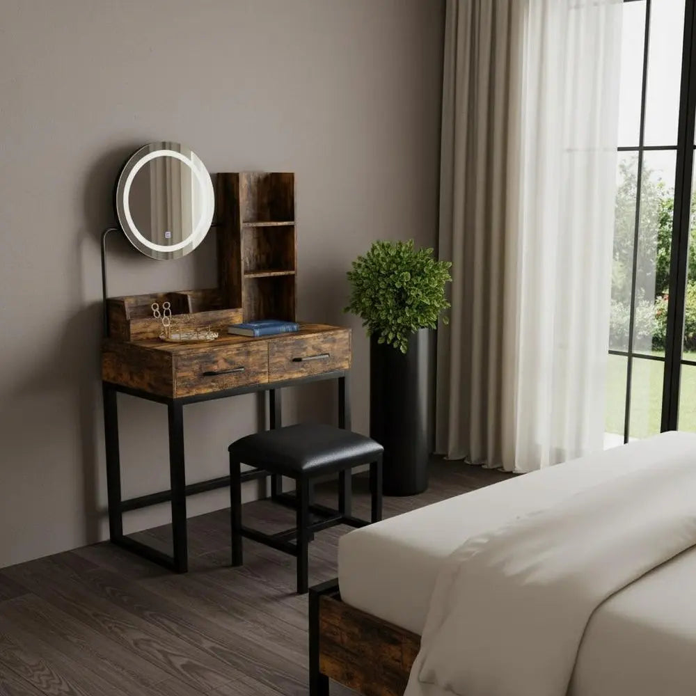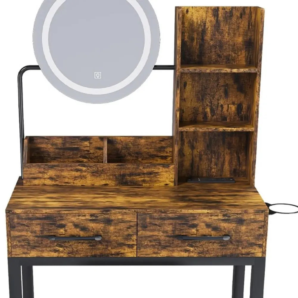 31" Brown Wood Lighted Two Drawer Dresser