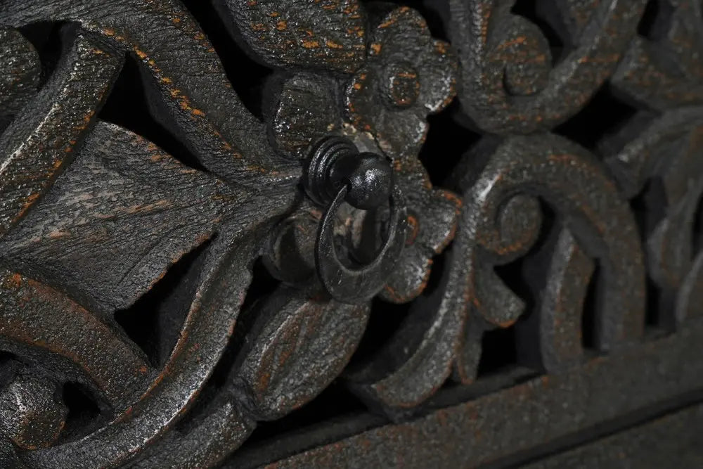 • 35" Black Carved Floral Solid Wood Six Drawer Dresser