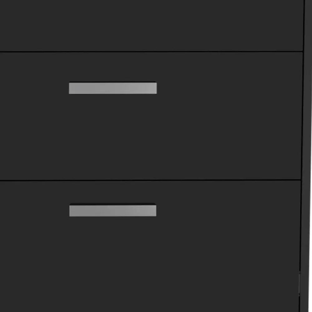 35" Black Wood Three Drawers Filing Cabinet