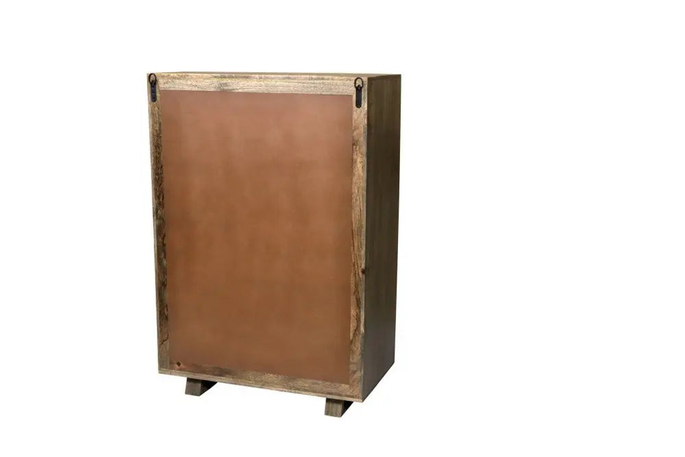 35" Brown Carved Geometric Solid Wood Five Drawer Dresser