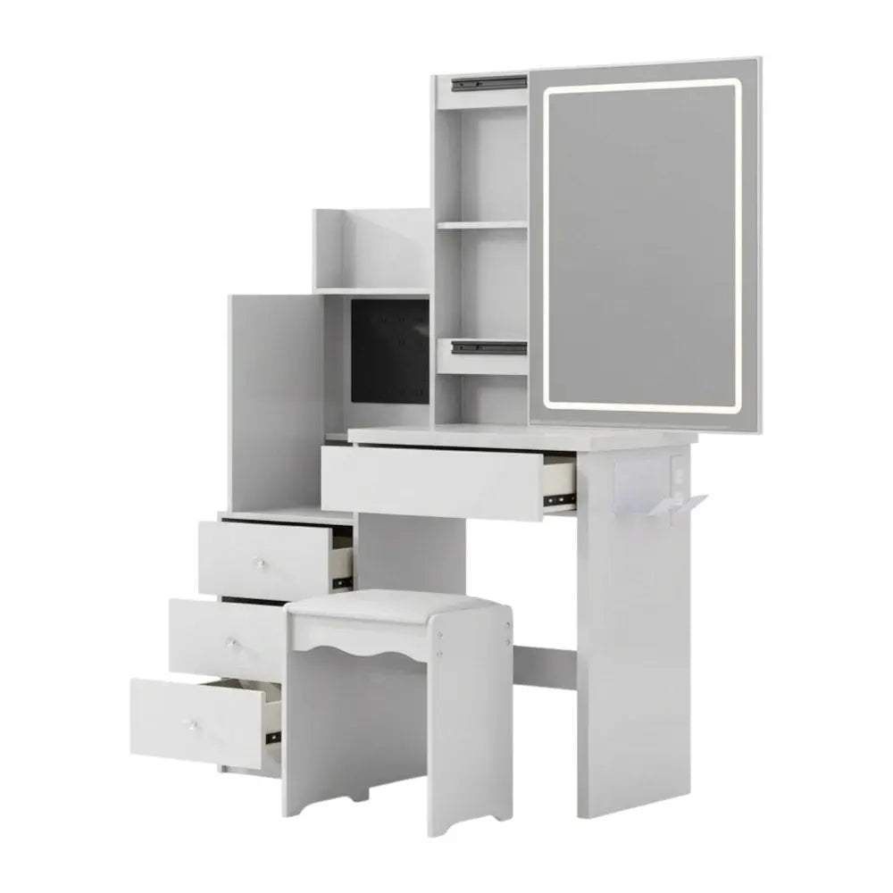 Make your room functional and visually enticing with this masterful 35-inch white wood lighted four drawer dresser. This vertical standard dresser has a convenient and wide top area for your getting ready needs and supplies. Equipped with four easy open drawers for practical and good looking clothing storage. The white coloration of this piece is neutral and will blend easily with most any decor. 53.15-inch h x 35.10-inch w x 13.39-inch d.