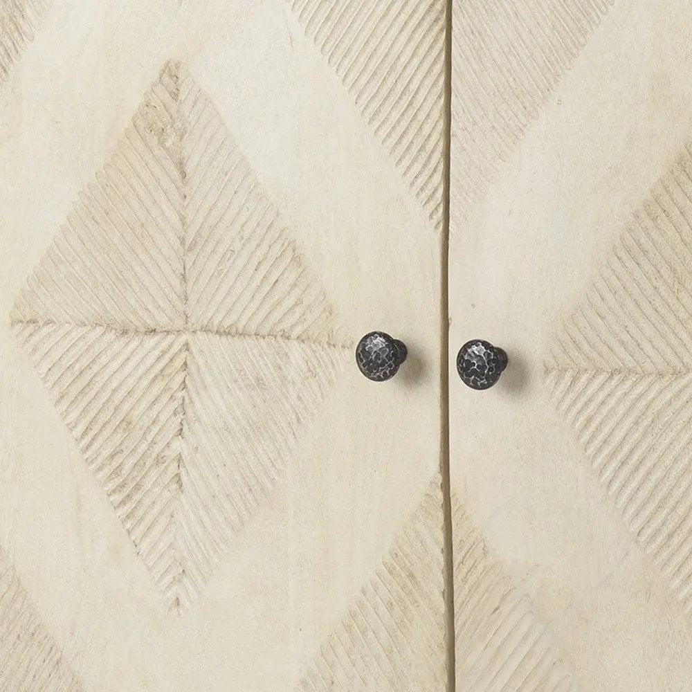 36" Cream and Gray Solid Wood and Iron Carved Geometric Accent Cabinet With Two Doors - NOVA HOME FURNITURE 36" Cream and Gray Solid Wood and Iron Carved Geometric Accent Cabinet With Two Doors - NOVA HOME FURNITURE 36" Cream and Gray Solid Wood and Iron Carved Geometric Accent Cabinet With Two Doors - NOVA HOME FURNITURE 36" Cream and Gray Solid Wood and Iron Carved Geometric Accent Cabinet With Two Doors - NOVA HOME FURNITURE 36" Cream and Gray Solid Wood and Iron Carved Geometric Accent Cabinet With Two Doors - NOVA HOME FURNITURE