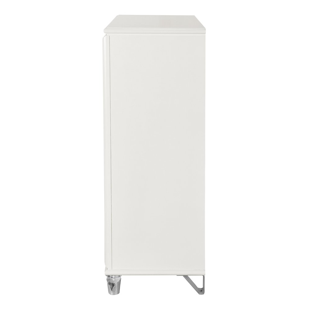 37" White Wood With Gold Faux Crystal Bling Wood Five Drawer Dresser