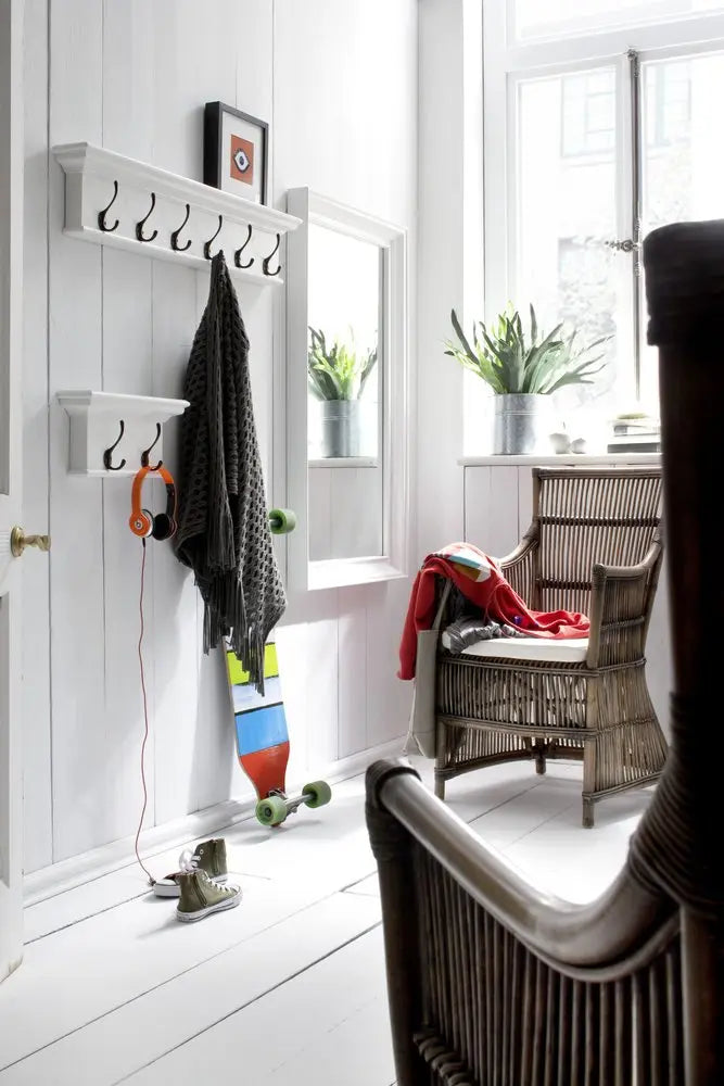 Classic White Wood Wide Four Hook Hanging Coat Rack - NOBLE HOME INTERIORS
