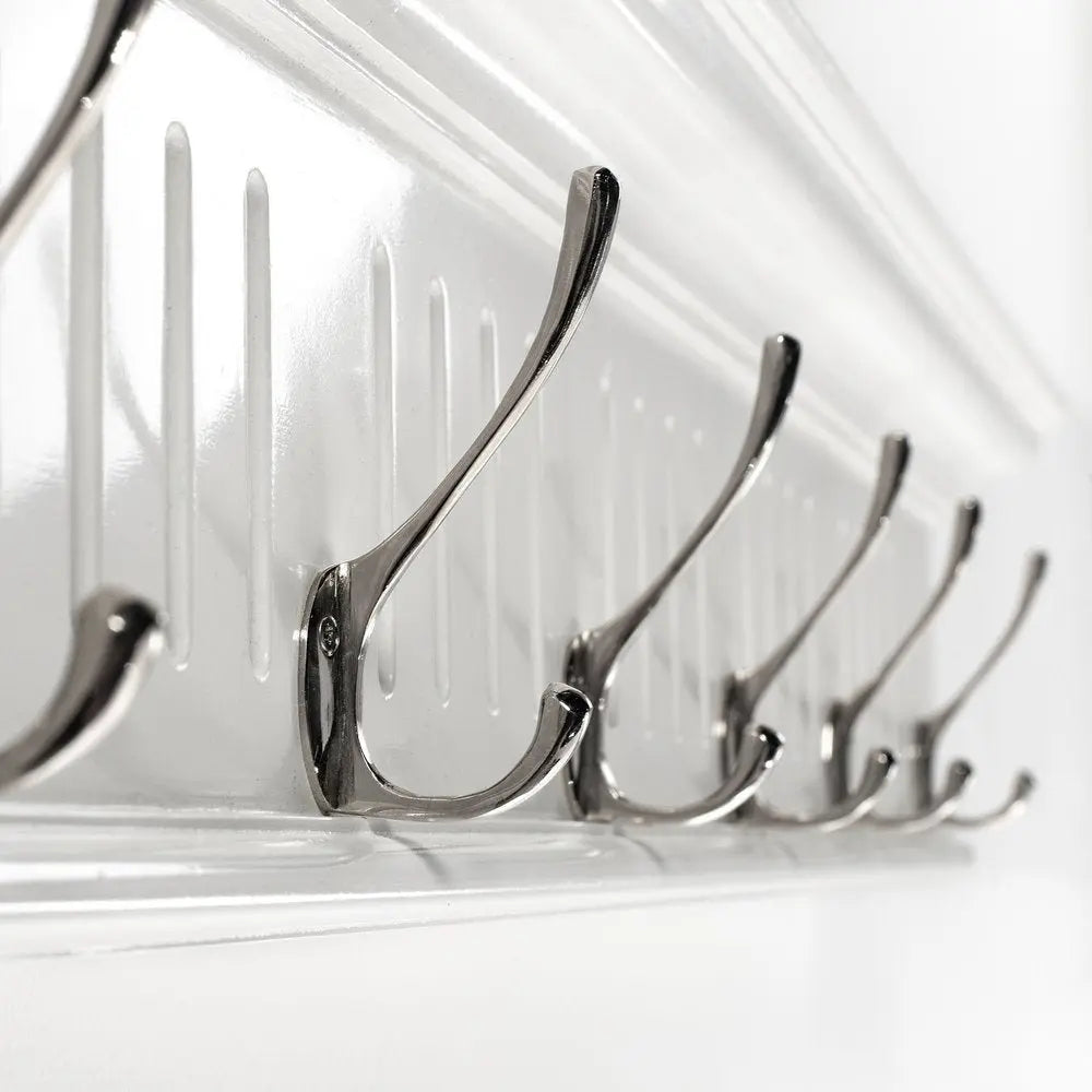 • 39" White Solid Wood Six Hook Wall Mount Coat Rack