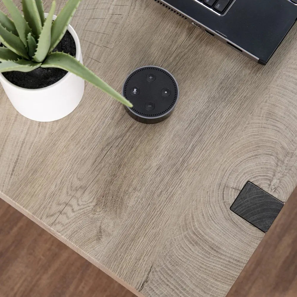 The Modern Chunky Natural and Gray Wood Table Desk is a stunning piece of quality furniture. The thick natural finish wooden desktop rests firmly on charcoal gray inset tapered legs that create a unique and striking contrast, giving this desk a definitive modern flair. An ideal desk for an open concept living space, this versatile piece is great as a desk but would also be a great accent table or even small dining or buffet table. Enhance the productivity of your home office with this rustic yet industrial chic desk that accommodates perfectly in small spaces. 30" x 45" x 24"