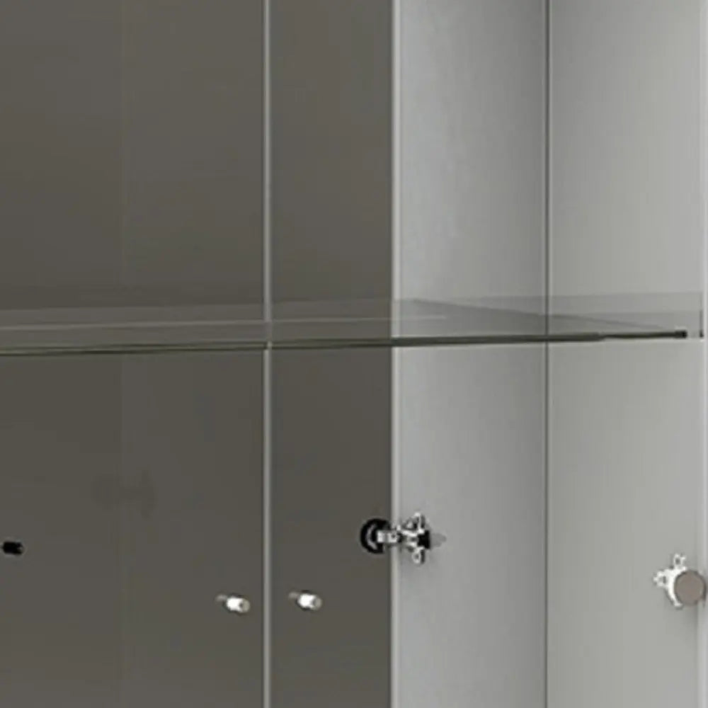 50" White and Silver Wood Curio Cabinet With Two Doors And One Drawer