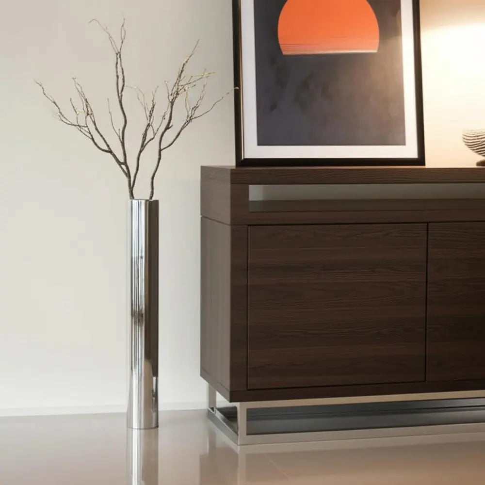 56" Silver Aluminum Cylinder Table Vase - NOBLE HOME INTERIORS