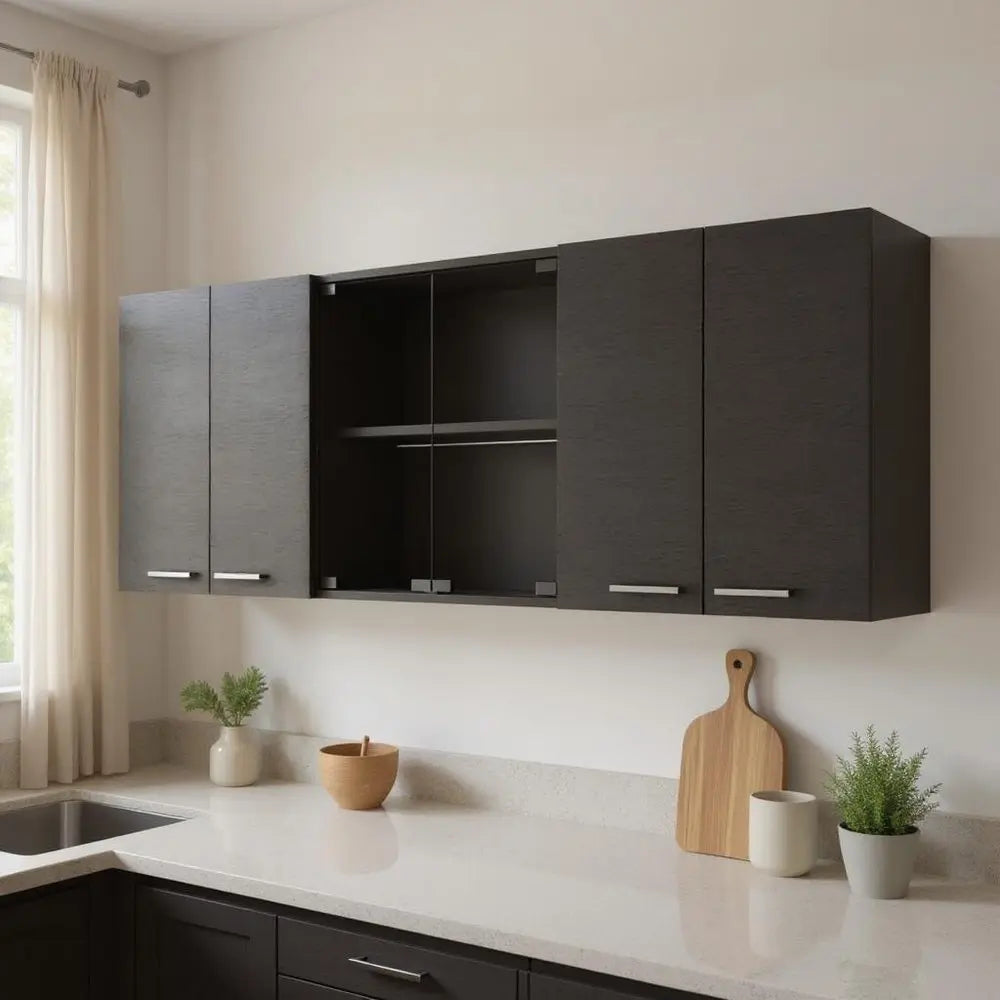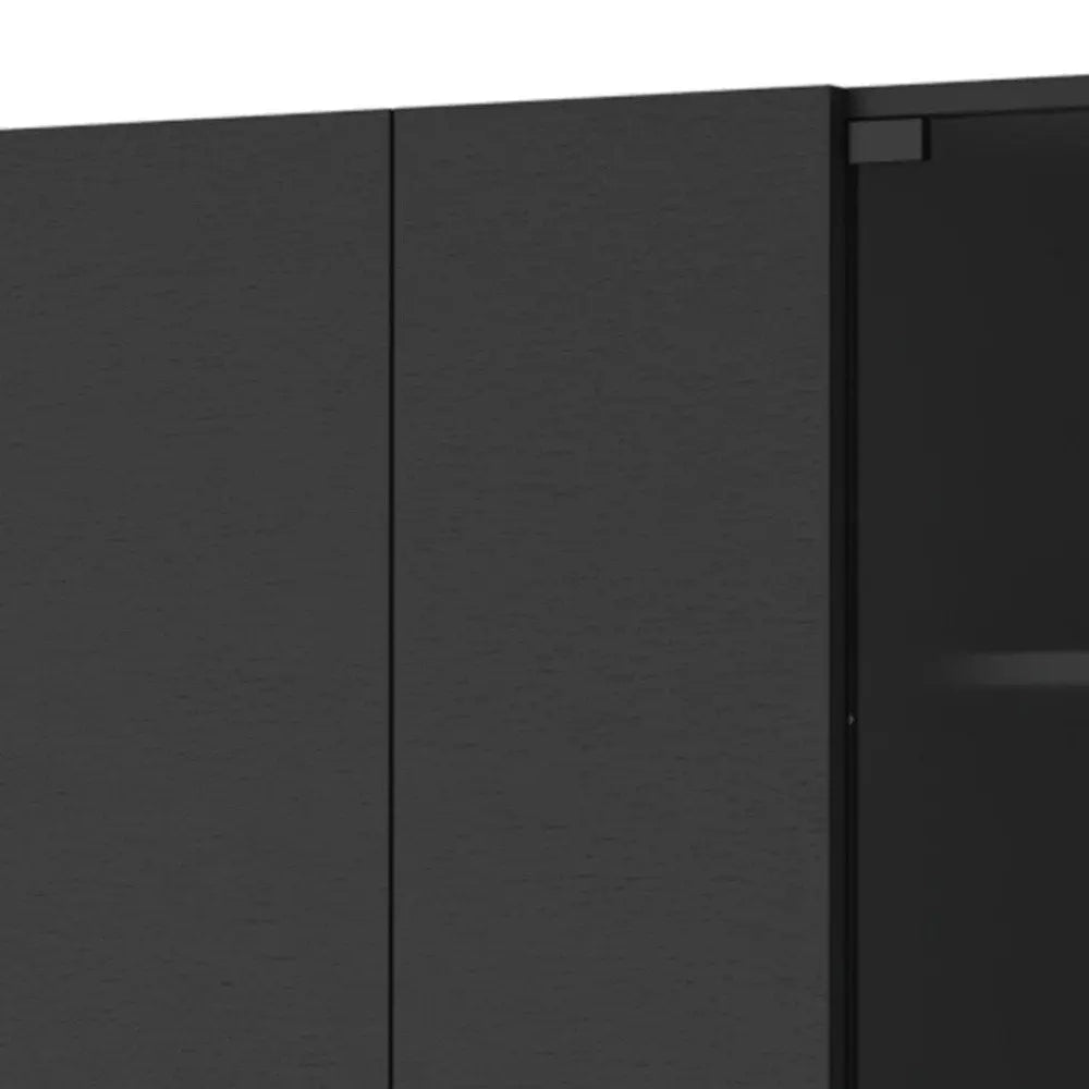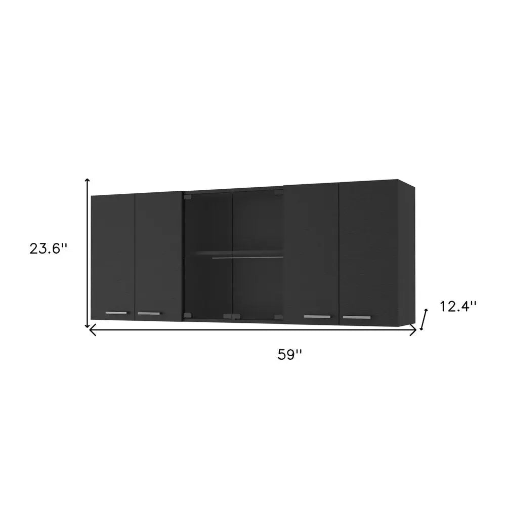 59" Black Wood Wall Mounted China Cabinet With Six Doors