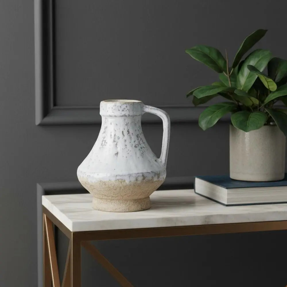 6" Beige and Ivory Round Terracotta Jug Vase With Does Not Apply