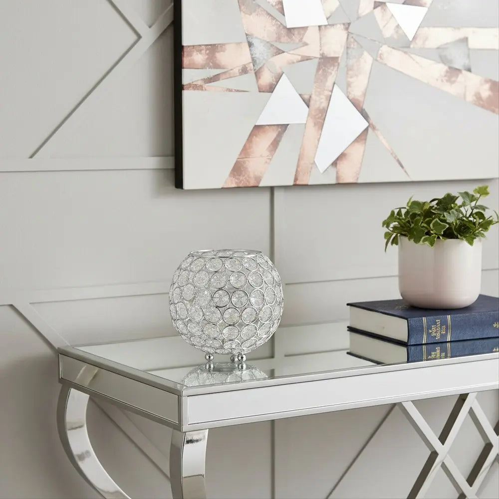 6" Clear And Silver Faux Crystal And Metal Round Table Vase