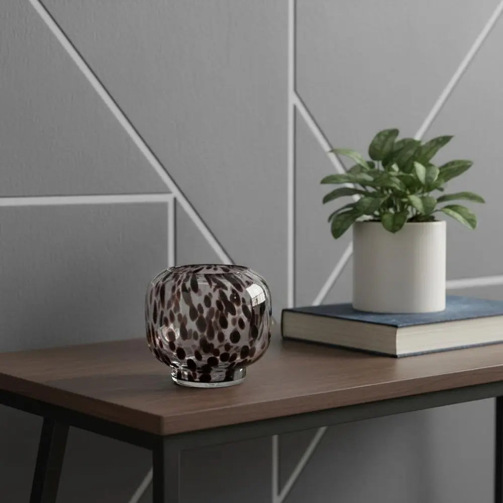 6" Clear Burgundy And Black Abstract Round Glass Table Vase