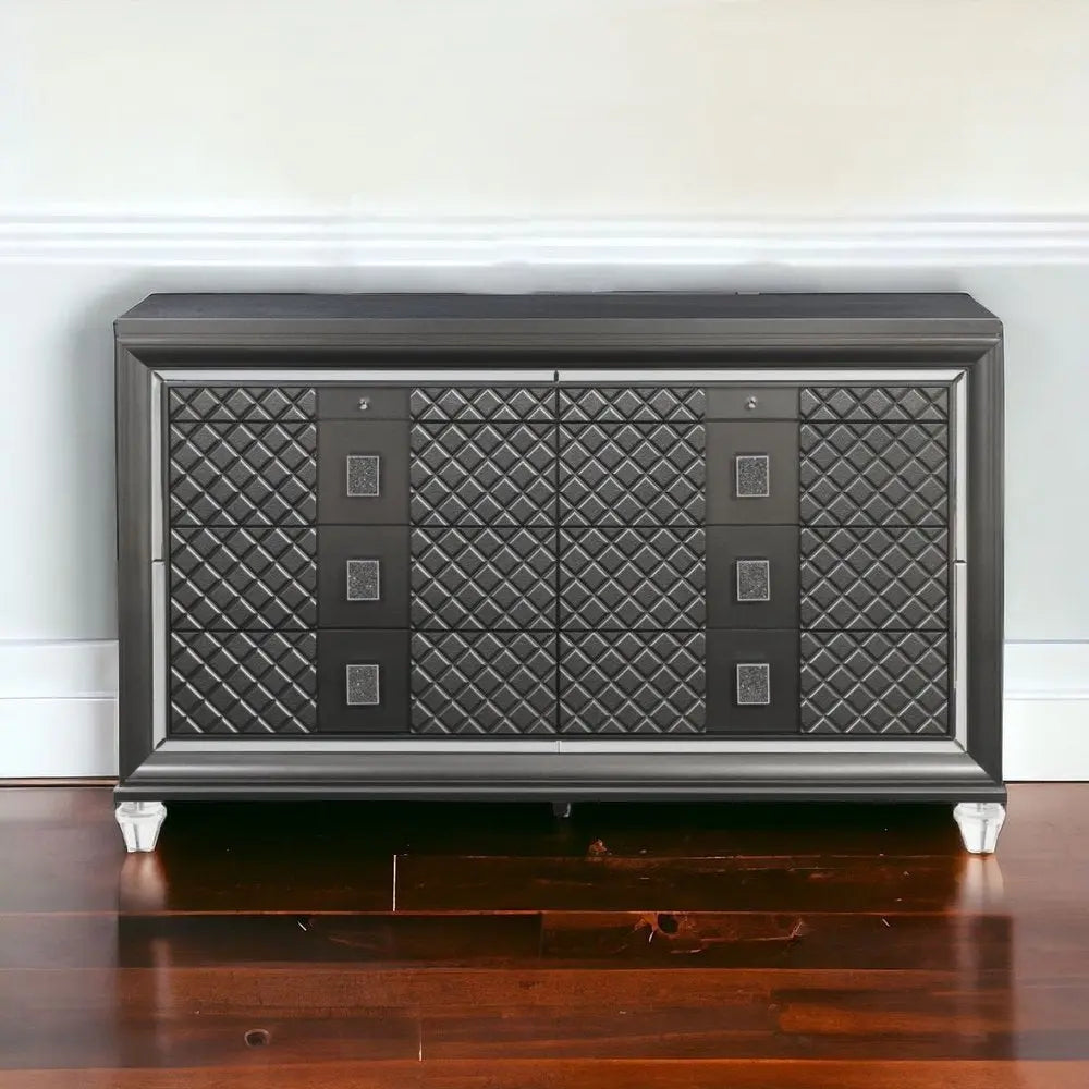 • 65" Gray Solid and Manufactured Wood Eight Drawer Double Dresser