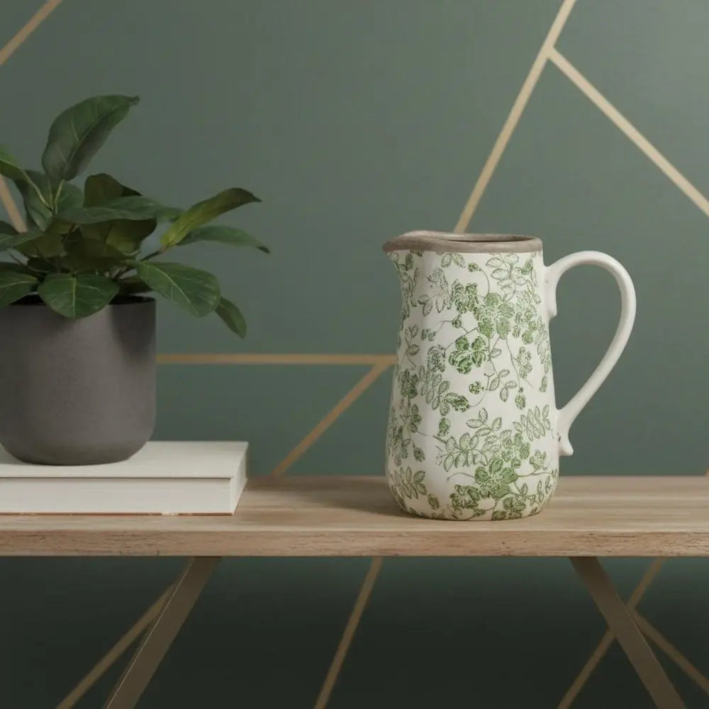 7" Green and White Leaf Round Ceramic Jug Vase With Does Not Apply