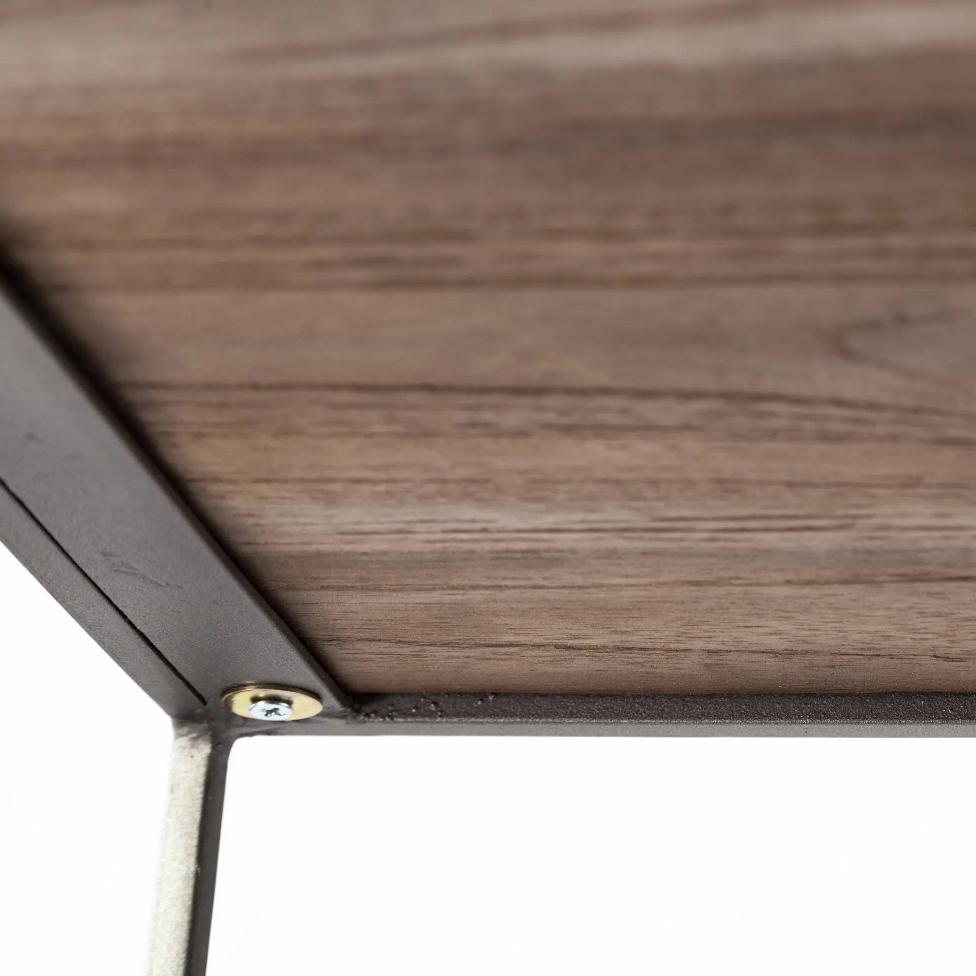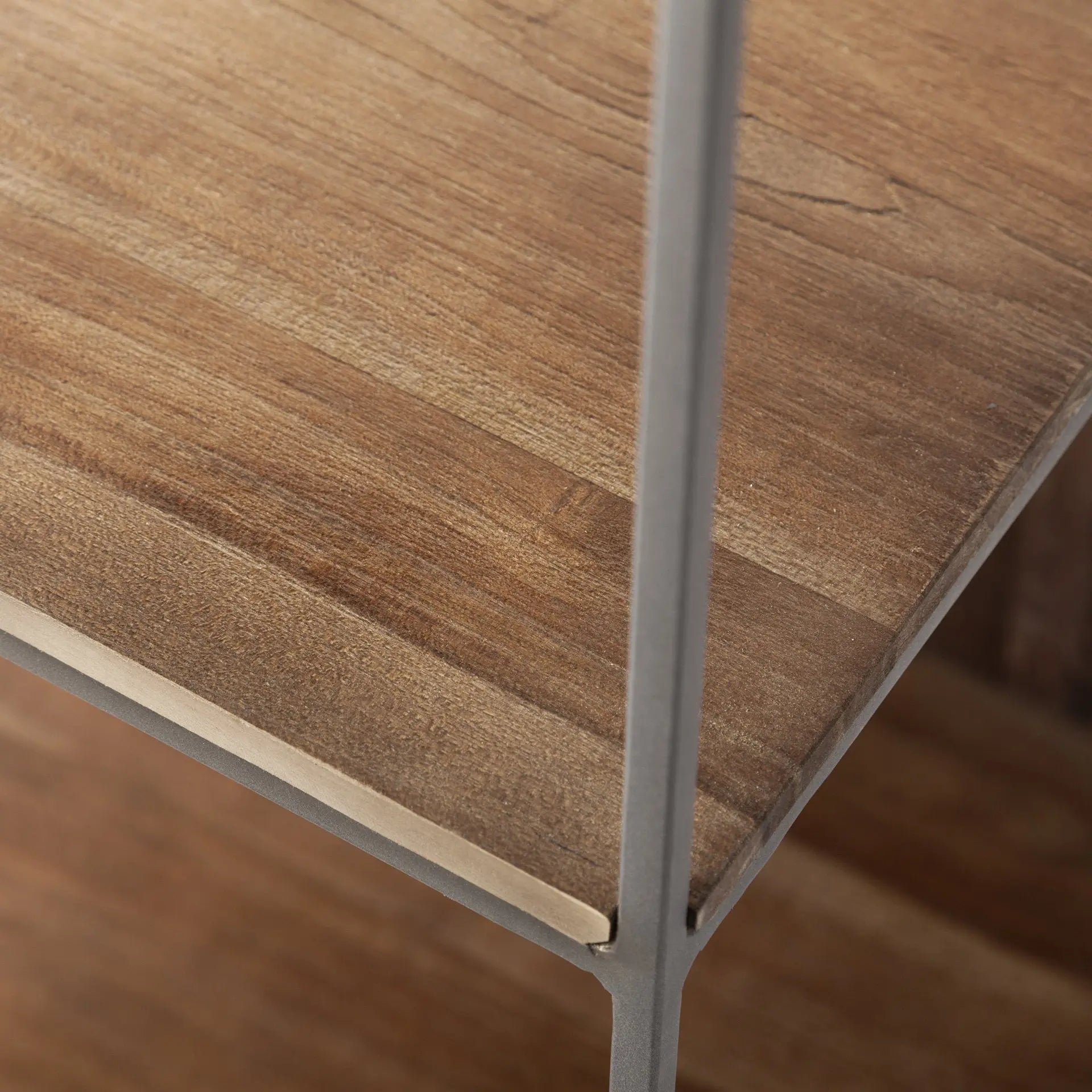 71" Brown And Silver Metal and Wood Four Tier Bookcase