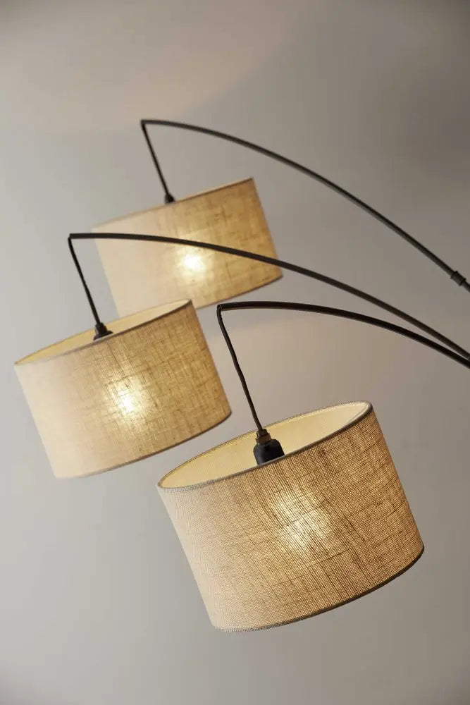 Add a bright anchor to your room with this 74-inch silver three light tree floor lamp with white linen drum shade. A gorgeous brushed metal base bring just the right amount of pizzazz to this fabulous lamp. The coloration of the brushed lamp base creates a fashionable marriage with the the white linen drum shaped shade. Creative and cool, this tree shaped lamp features a straight pole that branches out into multiple arms to maximize the light in your space. High quality design makes this a great lamp for not only lighting, but accenting a room with style. The perfect lamp to create just the right natural and soothing light in your space. 74-inch h x 44-inch w x 43-inch d.