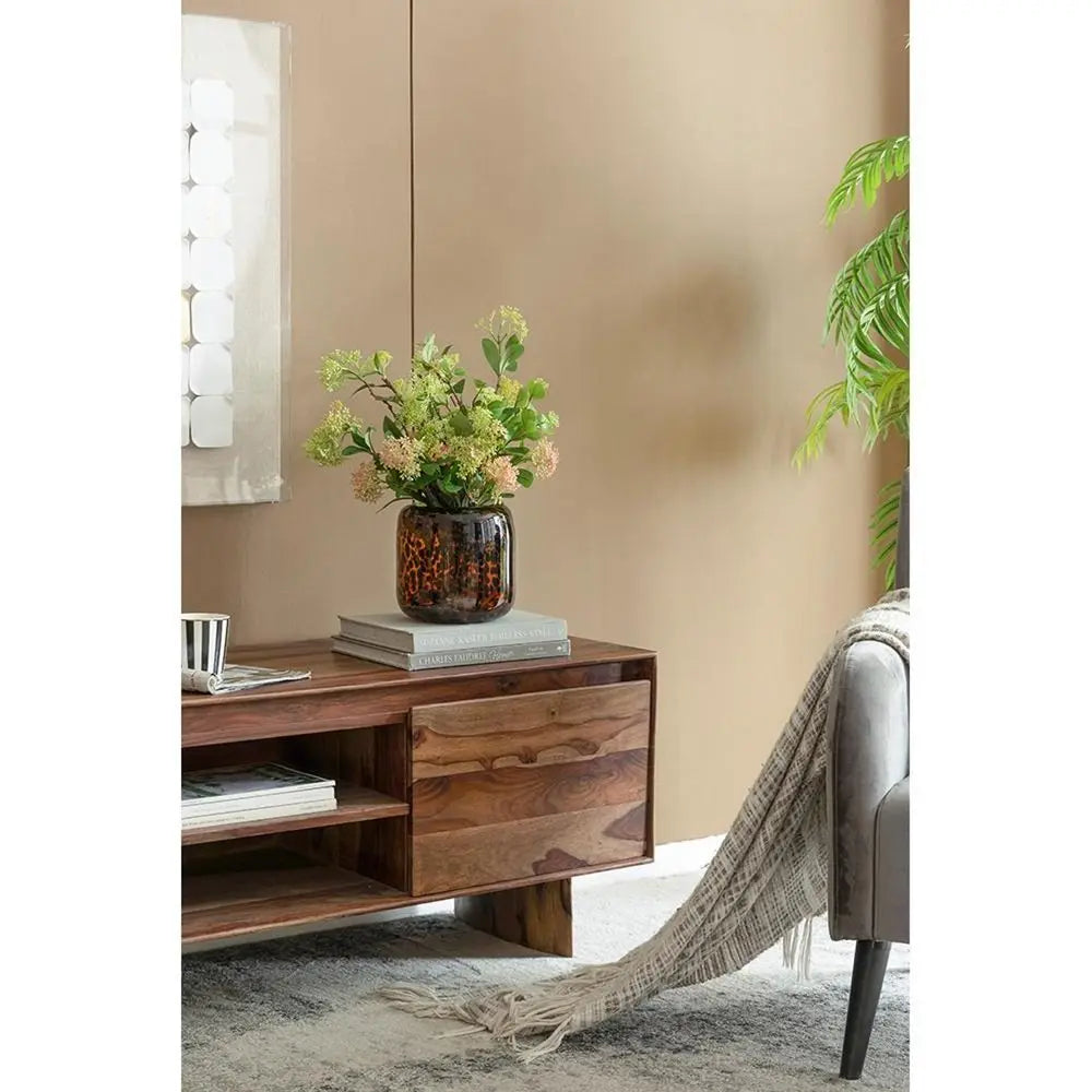 8" Amber And Black Animal Print Glass Round Table Vase
