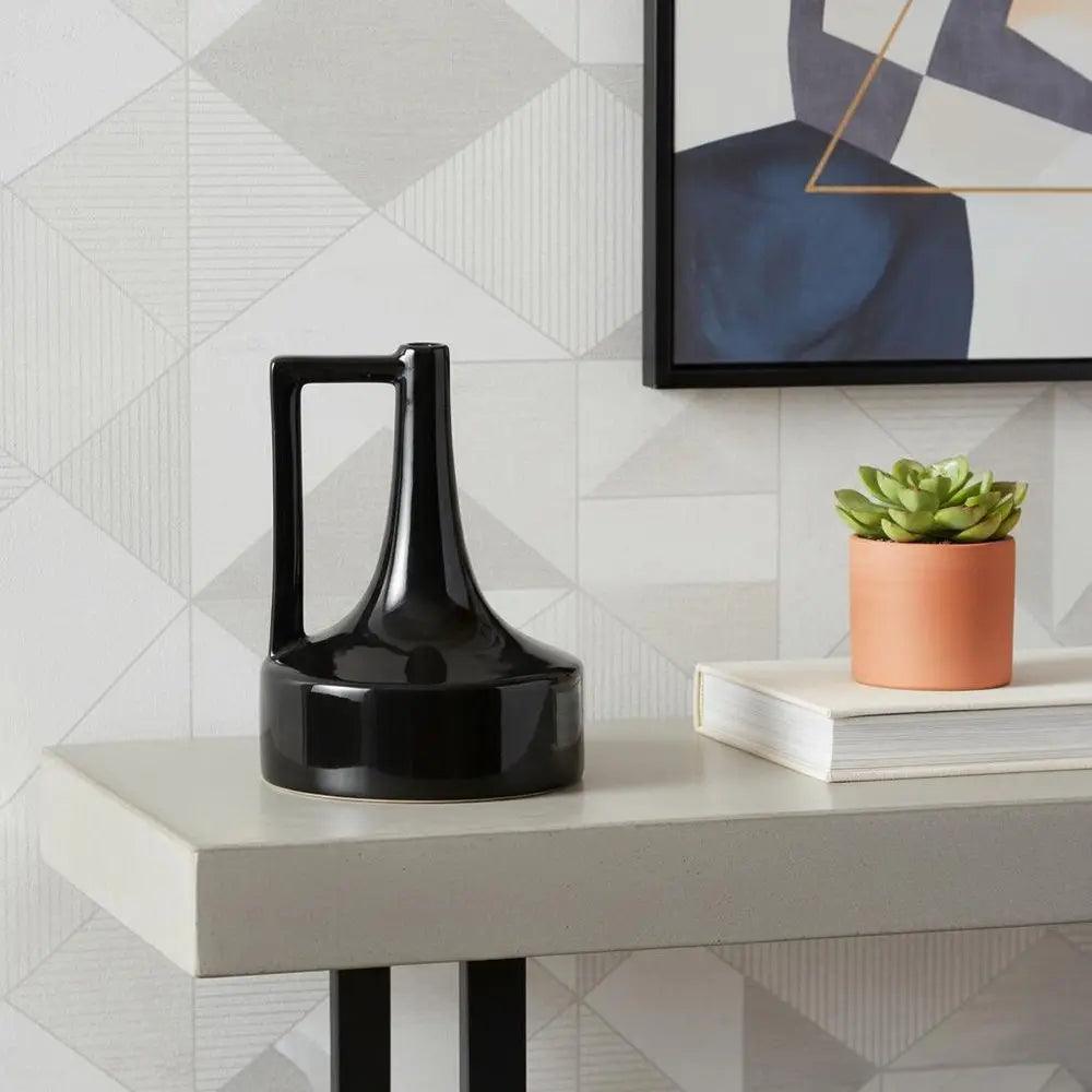 Enhance your living space with the sleek 8-inch black ceramic jug vase. Crafted from ceramic, this modern piece brings a contemporary touch to any room. The black color adds a sophisticated element to your decor, effortlessly complementing a range of interior styles. Ideal for showcasing your favorite blooms or standing alone as a stylish accent, this jug vase is both functional and decorative. Its unique design and versatile style make it a standout addition to your home decor collection. Elevate your home with this elegant piece that exudes charm and modernity. 8.27-inch h x 6.1-inch w x 6.1-inch d.