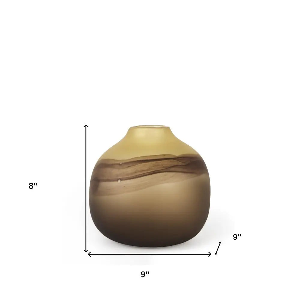 8" Yellow Abstract Cylinder Crystal Glass Table Vase