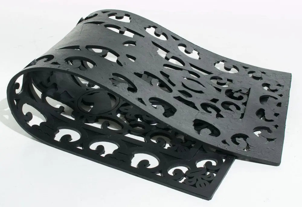 Ready to withstand heavy foot traffic, this 9-inch x 30-inch black rubber dog outdoor door mat is an ideal option for the front door or entrance way of your home or business. Crafted from rubber, this mat is not only functional but is a visually appealing accessory to welcome people to your home or business. Add this decorative mat to create a practical yet inviting welcome to all who enter. 9-inch h x 30-inch w x 0.15-inch d.
