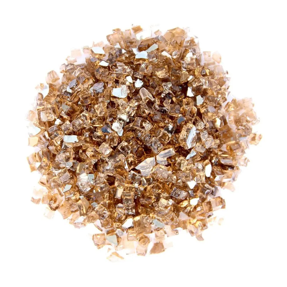 Relax, sit back, and enjoy your evenings in style. Get this copper round reflective fire pit glass, the perfect accessory for your home fire pit. Why settle for boring heat, when you could maximize it. Make the most out of your firepit when you add these round copper tempered fire glass rocks. 0.5-inch h x 0.5-inch w x 0.25-inch d.