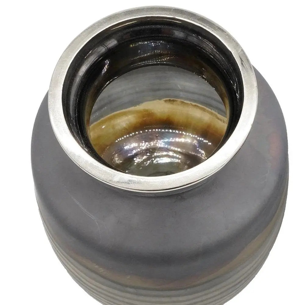 Set of Two Black And Gray Abstract Glass Round Table Vases