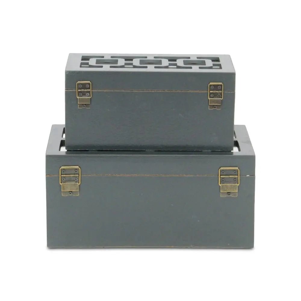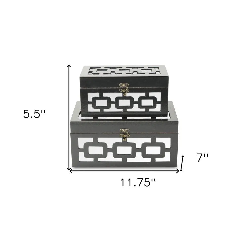 Set of Two Black And White Wood And Mirrored Glass Box With Lid - NOBLE HOME INTERIORS
