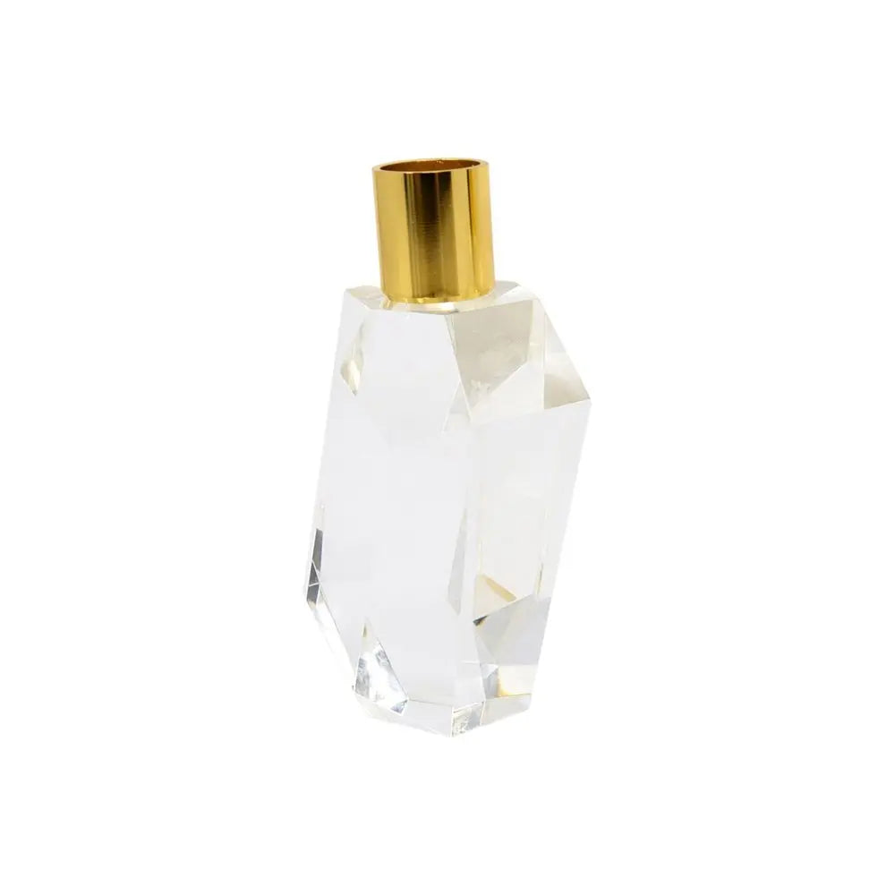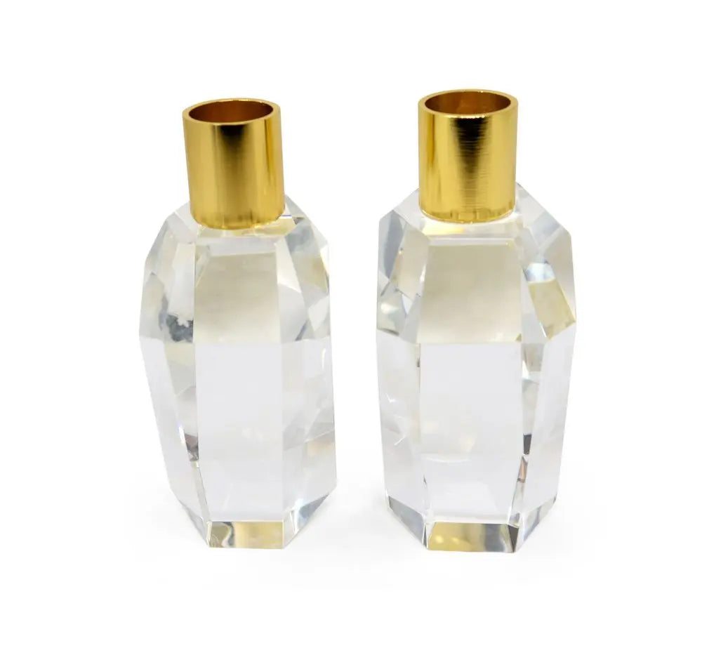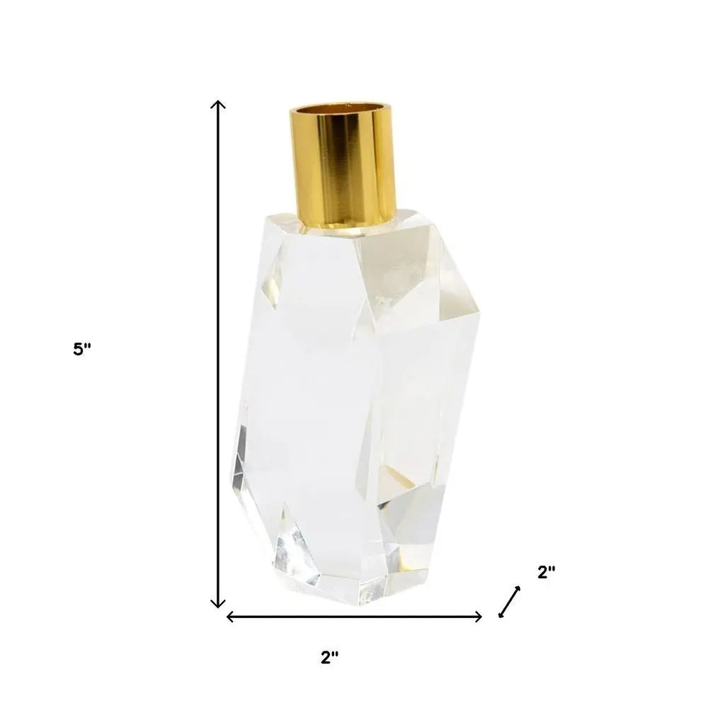 Set of Two Gold Abstract Crystal Tabletop Wedding Taper Candlesticks