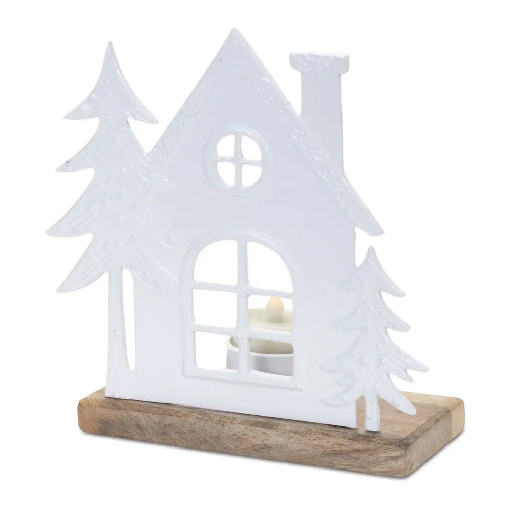 Decorate an end table, nightstand or desktop with this set of two white and beige abstract aluminum tabletop tealight candle holders. This holder arrives in a set of 2. dress up your home to impress every season with this fabulous candleholder. Candleholders are an attractive way to turn a simple candle into a piece of décor. 7.75-inch h x 7.00-inch w x 3.00-inch d.