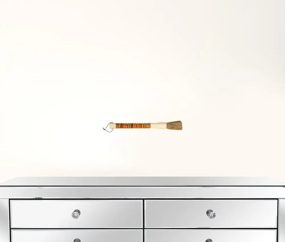 This yellow and brown jade abacus disc decorative calligraphy brush will add a beautiful decorative accent to your decor. Inspired by the origins of calligraphy, this brush is now used as a decorative accent known as a sign of peace. Made of jade, which is known to be a gem of nobility and royalty, combined with fine horsetail for the brush, this unique accent is sure to be a statement piece. Can hang on the wall or use as tabletop accent. Instantly liven up your space with this art that brings color and dimension to your space. 1.5" H x 12" W x 1.5" D
